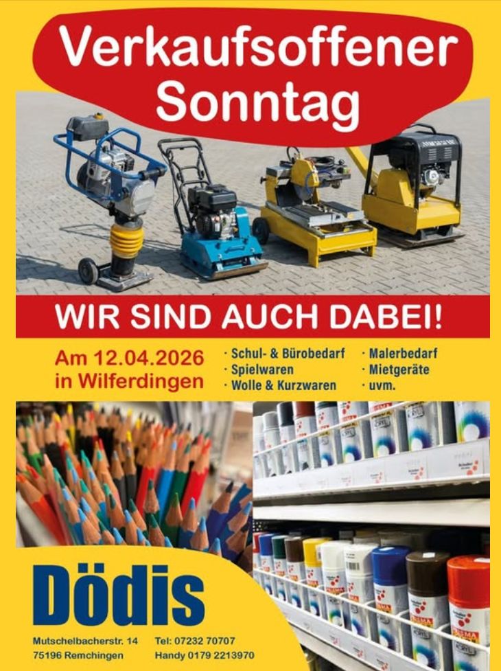 | Dödi's Schnäppchenmarkt bietet viele preiswerte Angebote des Verkaufes wie auch Mietgeräte für Bau und Hobby. |